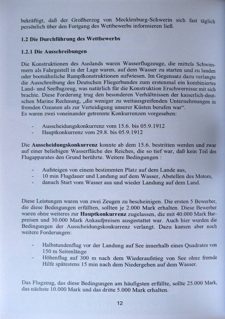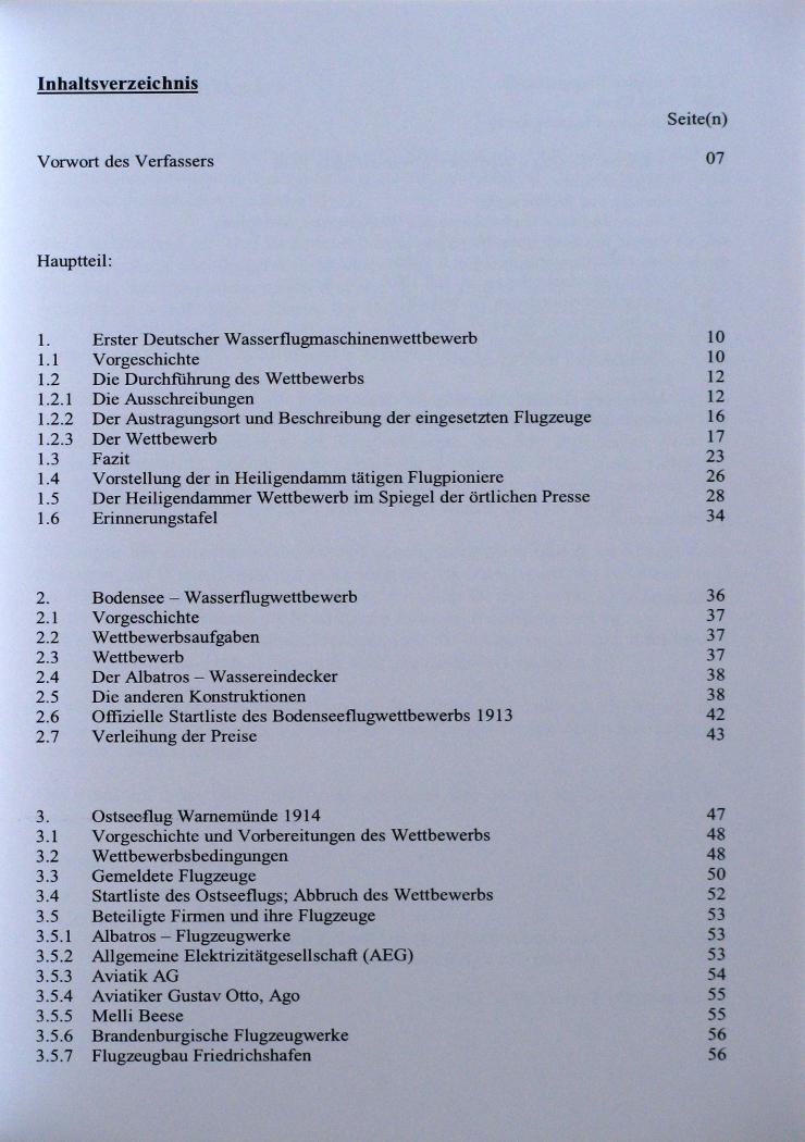 Die Entwicklung der Deutschen Flugzeugindustrie in den erster Jahrzehnten des zwanzigsten Jahrhunderts bekam wichtige Impulse durch die Veranstaltung mehrerer Wasserflug-Wettbewerbe. In dieser Broschüre beschreibt der Autor die Ereignisse, die Teilnehmer und die Flugzeug-Konstruktionen der Wettbewerbe in Heiligendamm, am Bodensee und vor Warnemünde. Die Beiträge sind mit vielen historischen Bildern illustriert. Erstmalig wird in einer geschlossenen Form über die Vorbereitung und Planung, die Durchführung und die Ergebnisse der Wettbewerbe berichtet.