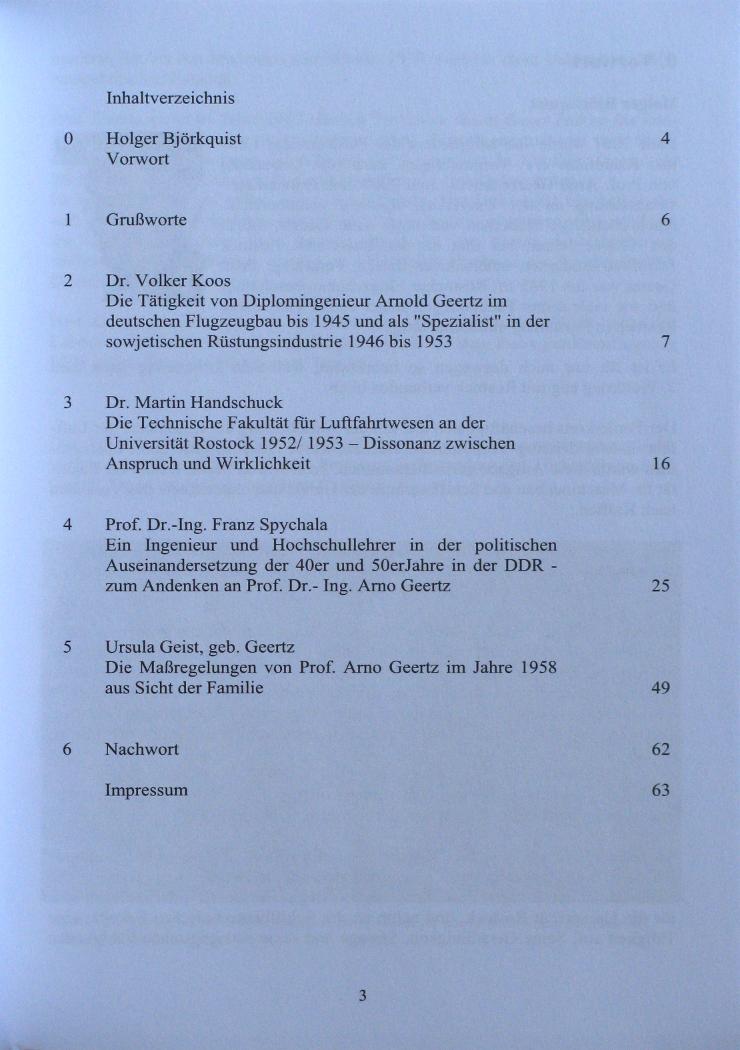 Versuchs- und Militärflugzeuge werden heute häufig mit Schleudersitzen ausgestattet. Mit der Entwicklung dieser Rettungssysteme befasste sich Arno Geertz von 1939 bis 1945 in den Rostocker Heinkelwerken. Es sind aber nicht nur diese technische Leistungen, die seine Lebensgeschichte so interessant machen. Nach dem Krieg gehörte er zu der Gruppe deutscher Wissenschaftler, die in der sowjetischen Rüstung als „Spezialist“ arbeiten mussten. Als er 1953 nach Rostock zurückkehrte, fand er ein anderes politisches System vor. Er nahm eine Tätigkeit an der Universität Rostock auf und war dort in Lehre und Forschung sehr erfolgreich. Später wurde er politisch verfolgt, weil er nicht bereit war, seine Lehre den herrschenden gesellschaftlichen Prämissen anzupassen. 1958 sah er sich gezwungen, die DDR illegal zu verlassen. In der Bundesrepublik fand er wieder Anschluss an die sich entwickelnde Flugzeugindustrie. Vier Autoren geben Einblicke in Leben und Umfeld dieses vielseitigen Wissenschaftlers.